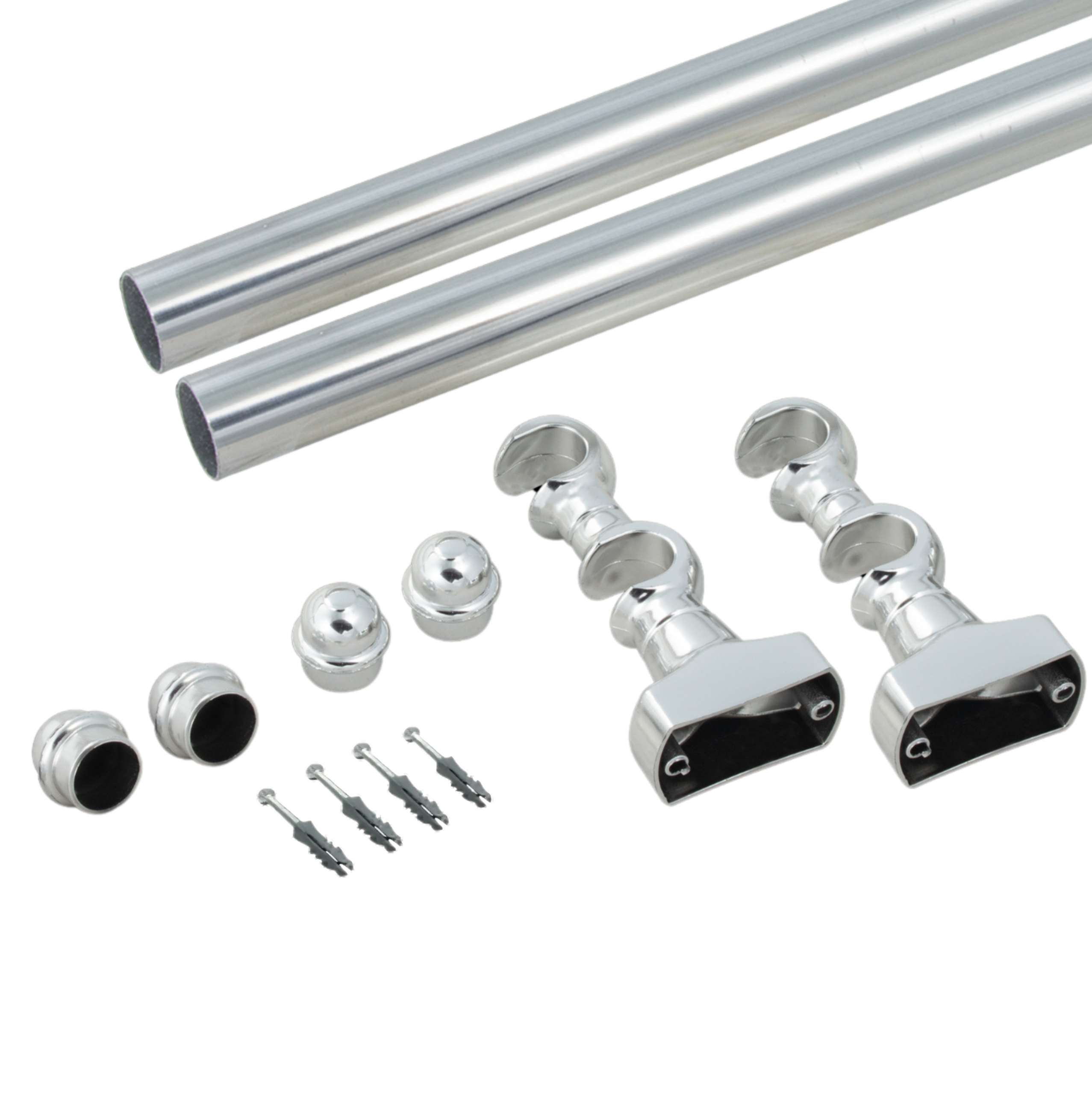 O Kit Varão Cromado com Suporte Premium é a escolha ideal para quem busca funcionalidade com um toque sofisticado. Seu acabamento cromado de alto brilho adiciona modernidade ao ambiente, enquanto a estrutura garante durabilidade e firmeza na instalação de cortinas.